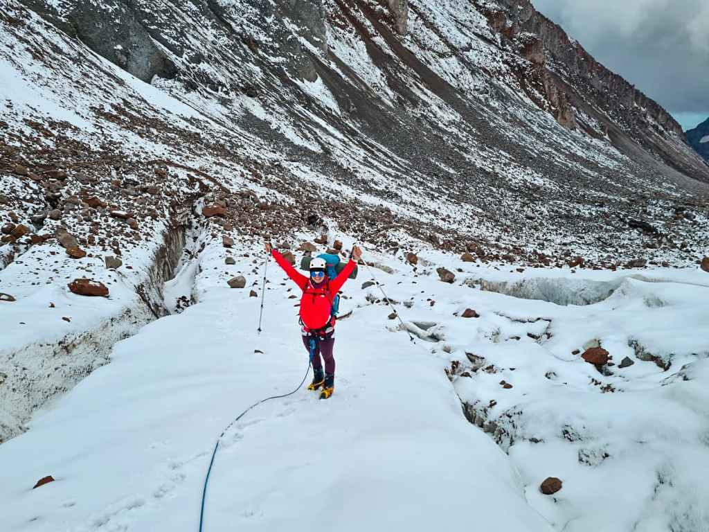 After breakfast, Shota and I decided to skip another acclimatization hike and rather pack our gear to climb directly to 4500m to set up our high camp, planning to reach the summit the next day. I have to admit, three days are a short amount of time to climb a 5000m peak, but if the weather’s so good, there’s no time to hesitate. Glaciers and snow, here we come.