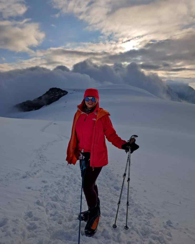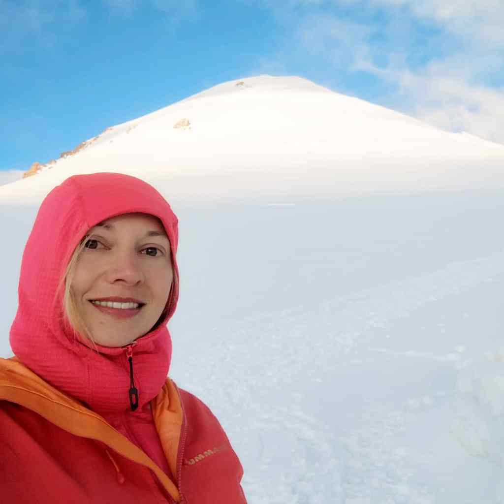 There was still some daylight left when I closed my eyes, trying not to think too much, focusing on my breath. I fell asleep for an hour, then woke up with an immense headache, feeling nauseous, my heart was racing. My smart watch triggered an alarm, whenever the hear rate would go above 115bpm. It happened every 5min. Altitude finally got me, I thought, remembering all those painful details about my experience in Colombia. I woke up Shota, he looked at me, instantly telling me it’s normal, everything will be fine. After an hour of suffering, my headache had increased, I felt like I would have to throw up. Shota recommended to go for a walk. I couldn’t believe it? I felt like I was falling apart, why going for a walk? But I trusted him. He helped me getting in my big boots, took my hand and gently pulled me out of the tent. I couldn’t stand up on my own. We walked around the camp, carefully checking for crevasses. It was new moon but the landscapes were well recognizable, it was bright outside. I wondered why. Then I looked up to the sky and I couldn’t believe what I was seeing. The stars were shining so bright, brighter than I had ever seen them before. The milky way was stretching like a big ray of light across the night sky. There was no wind, it was quiet, a quietness, I hadn’t experienced yet. In that moment I felt eternity. Everything was limitless, the universe, views, possibilities. Standing among a billion stars.